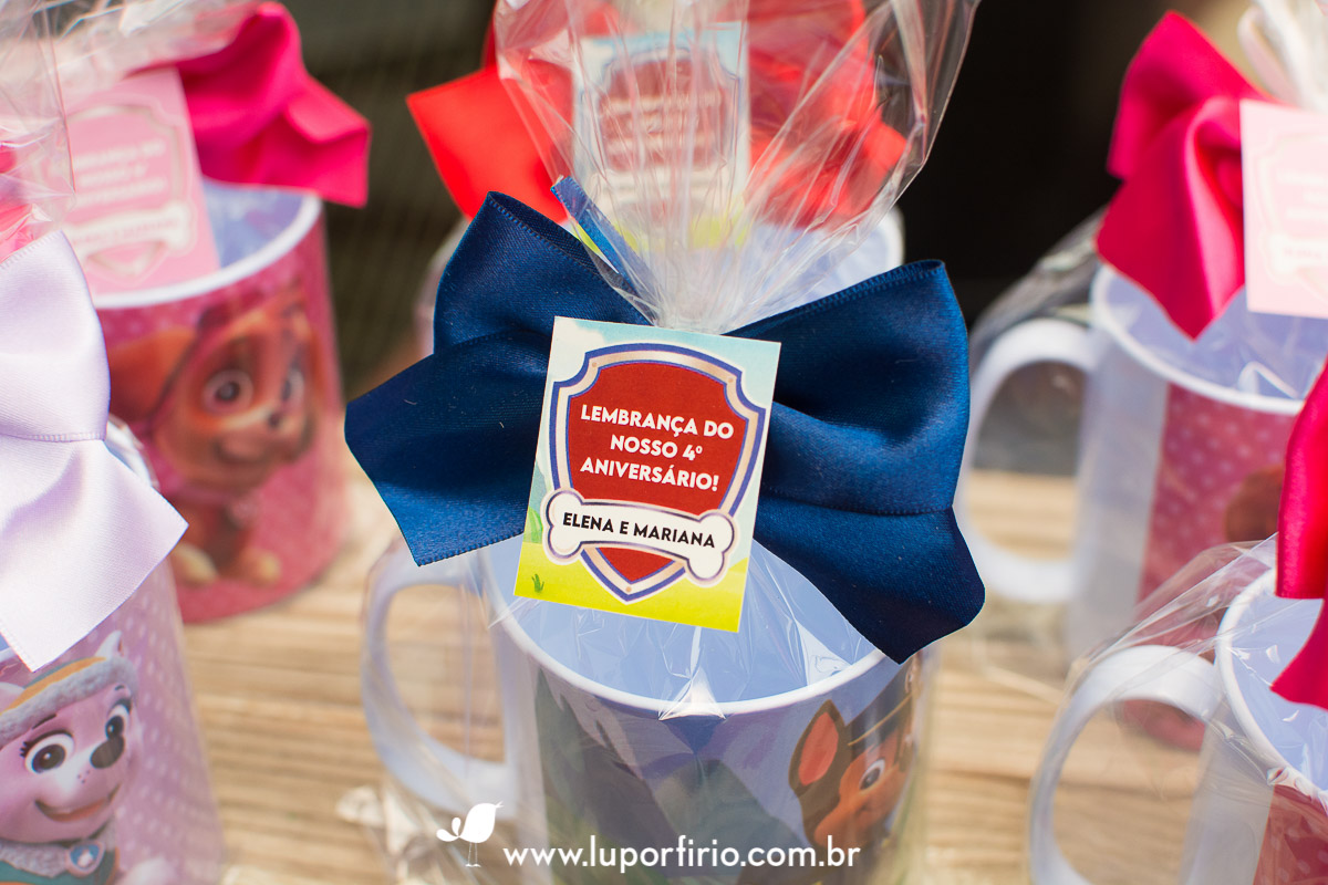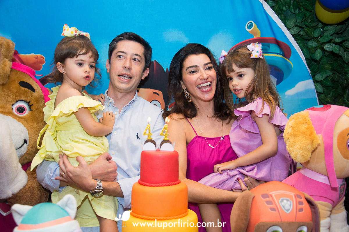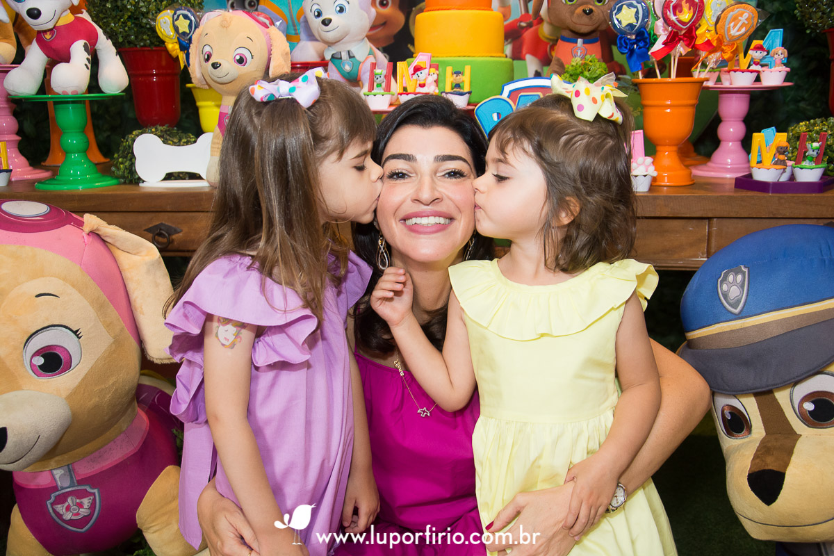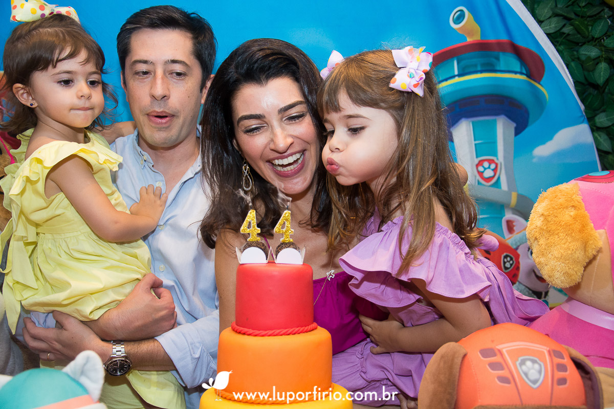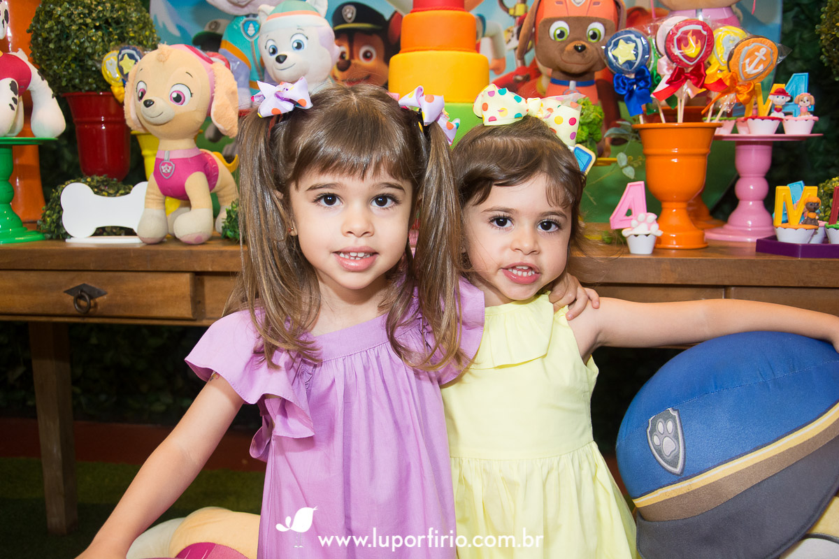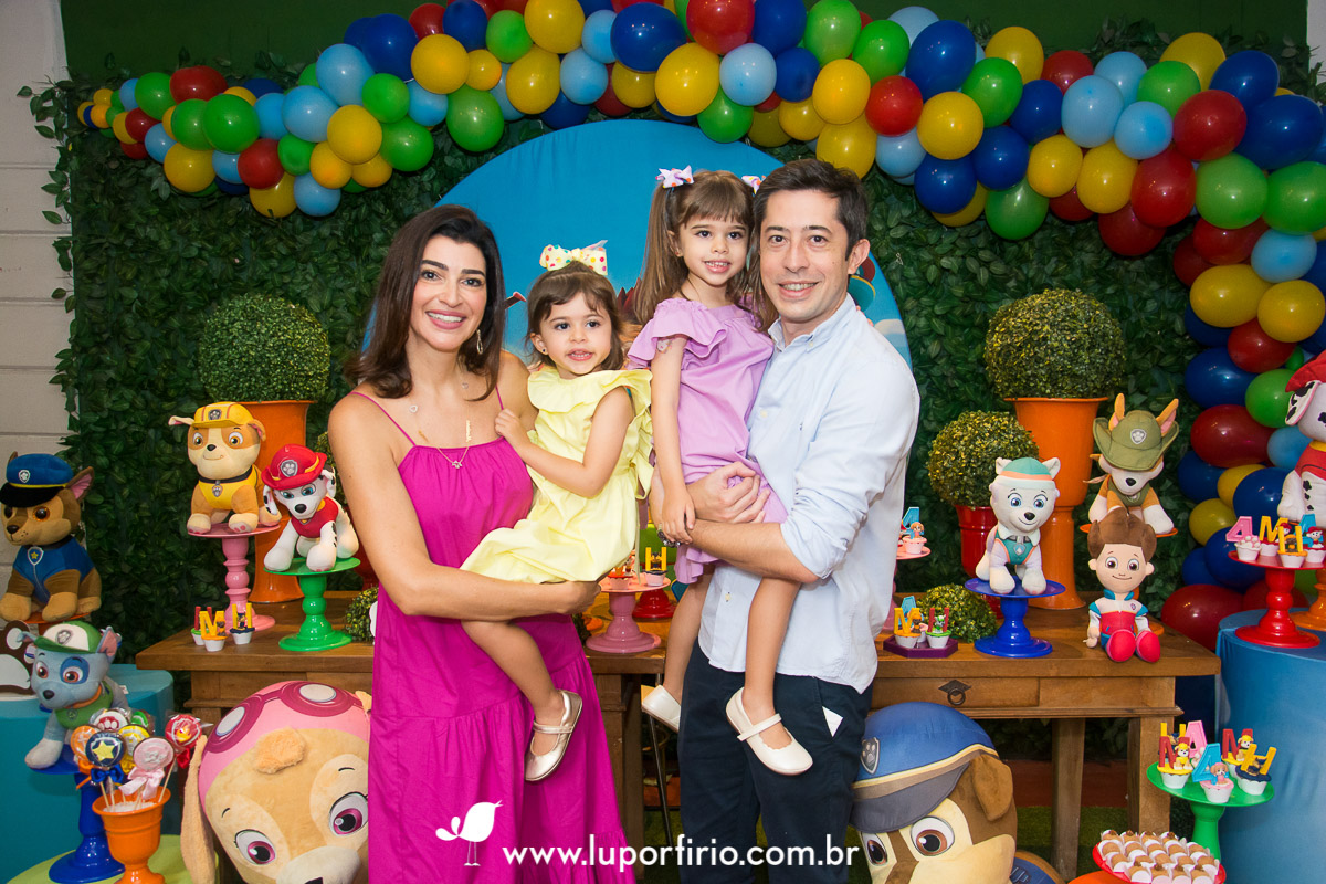 A Elena e a Mariana amam tanto a Patrulha Canina que a mamãe até chamou o Chase e a Skye para participarem da festa de 4 aninhos. A comemoração aconteceu no Buffet Lá no Quintal, um espaço lúdico e encantador, na Vila Madalena. Foi um dia inesquecível!